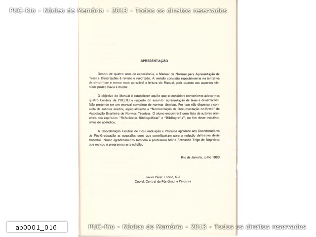 Apresentação in A Pós-Graduação na PUC-RJ VI - Normas para Apresentação de Teses e Dissertações