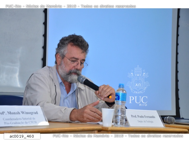 O professor Paulo Fernando Carneiro de Andrade, do Departamento de Teologia, na Plenária de encerramento do II Colóquio de Pós-Graduação com o tema Humanidades em tempo de cólera.