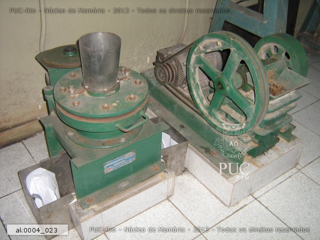 ak0004_034 | 3/6/2008 | Laboratório de Engenharia Metalúrgica, localizado na casa XXI da Vila dos Diretórios. Equipamento a motor elétrico, não identificado. |