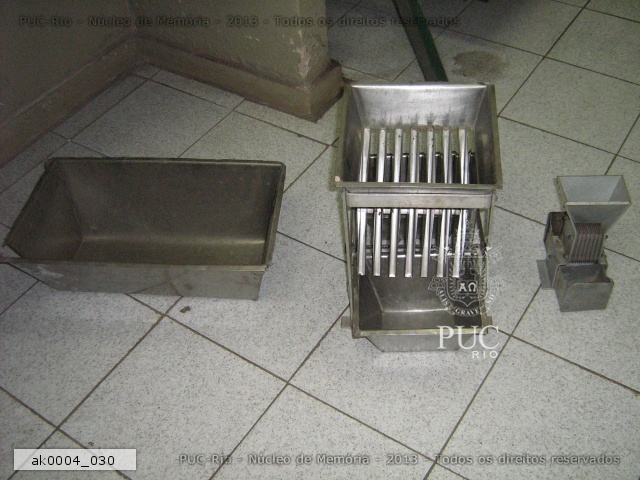 ak0004_035 | 3/6/2008 | Laboratório de Engenharia Metalúrgica, localizado na casa XXI da Vila dos Diretórios. Autoclave, peneiras, balança Filizola, marreta e equipamento não identificado. |