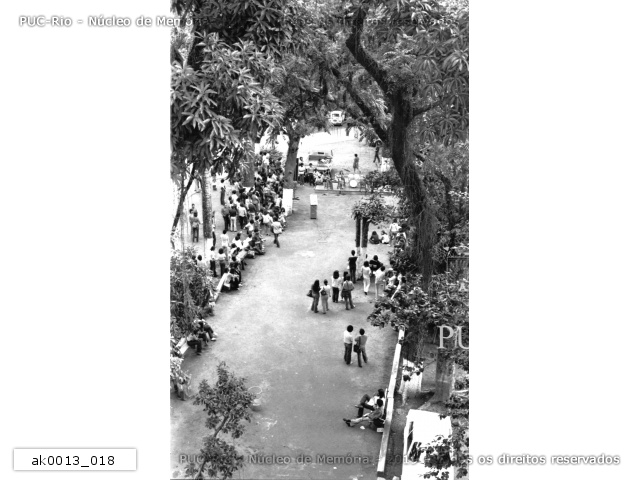Vista a partir de sala na Ala Kennedy de alunos participando de sarau.