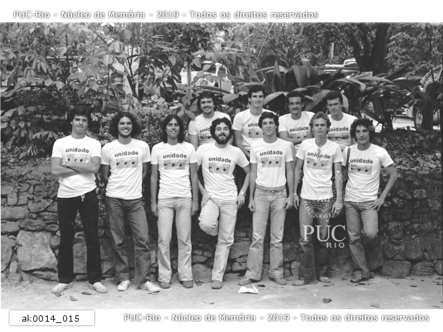 Alunos da chapa Unidade posam para foto no muro dos fundos da Vila dos Diretórios.