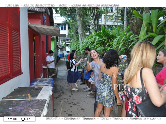 Alunos em confraternização na Vila dos Diretórios após o jogo de futebol de salão.
