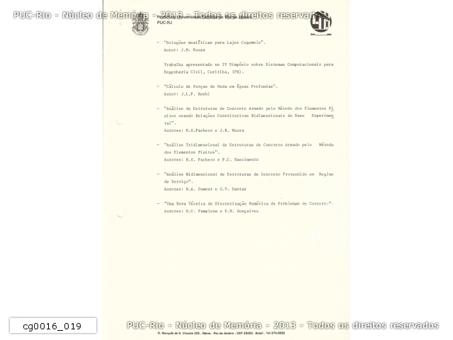 Relatório técnico do programa de mestrado em Engenharia Civil com ênfase Nuclear. Trabalhos Apresentados em Congressos.