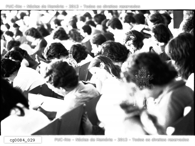 Candidatos nas arquibancadas por ocasião da prova de vestibular.