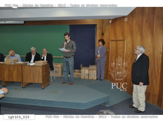 | Professores homenageados com medalha comemorativa aos 70 anos da PUC-Rio em reunião do Conselho Universitário. - cg0103_004 |