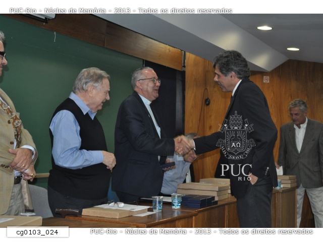 | Professores homenageados com medalha comemorativa aos 70 anos da PUC-Rio em reunião do Conselho Universitário. - cg0103_005 |