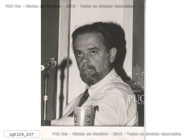 Quinta edição da Feira de Comunicação Social da PUC, que aconteceu do dia 28 de outubro a 1 de novembro de 1991. Na foto, está o cientista político, ex-deputado federal e articulista do Jornal do Brasil Marcio Moreira Alves, que foi um dos palestrantes da Feira.