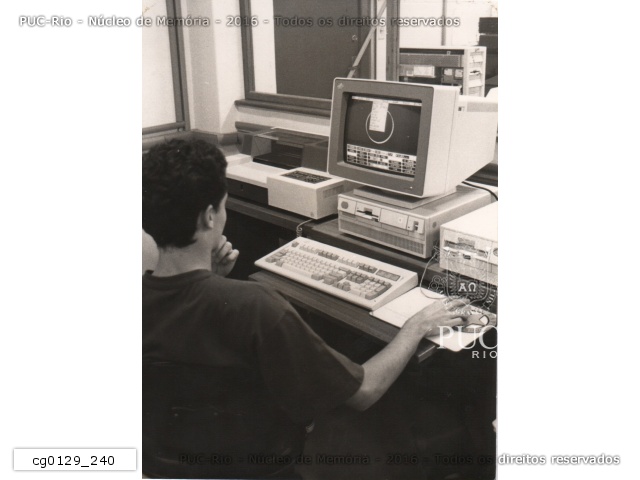 Aluno utilizando o Laboratório de Visualização, chamado "Laboratorium", que funcionava no segundo andar do RDC.