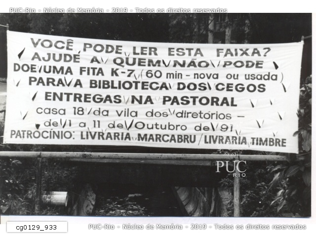 Companha Ajude a uma cego ler com patrocínio das livrarias Marcabru e Timbre. A campanha recolheu fitas cassetes, novas ou usadas, para ajudar a Biblioteca dos Cegos, do Clube de Boa Leitura, a montar uma biblioteca sonora para cegos.