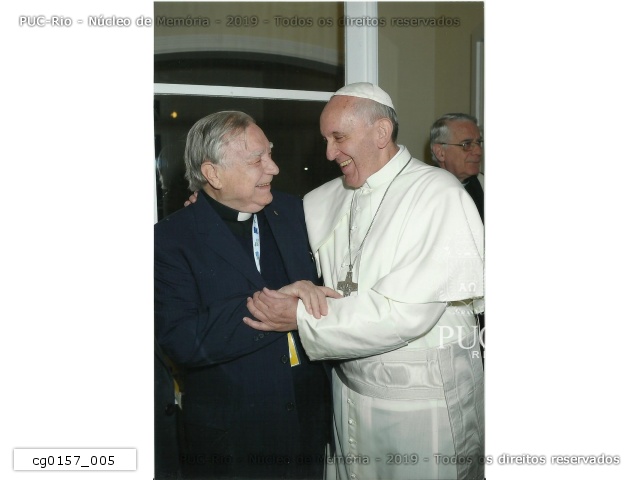 Amigos de longa data, o Papa Francisco cumprimenta o pe. Ivern S.J. na residência dos Jesuítas no Sumaré.
