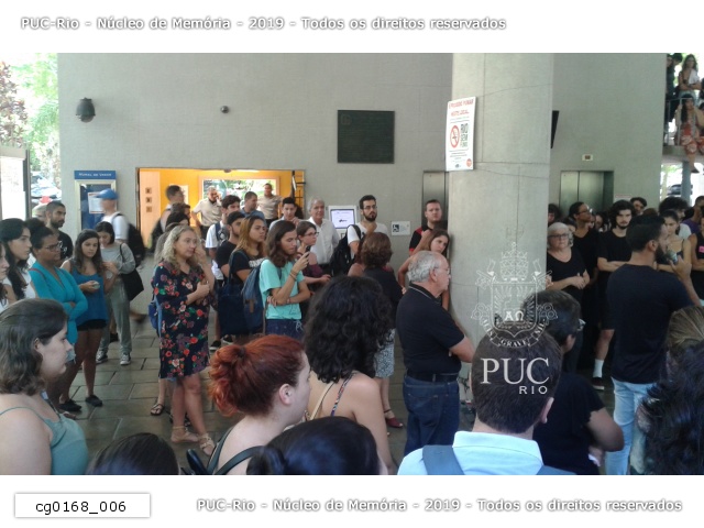 Manifestação nos pilotis com a participação de alunos, professores e funcionários.