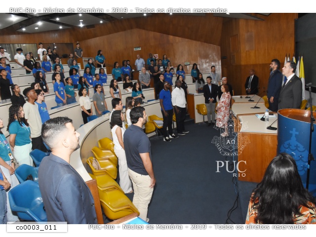 Na mesa da esq. para dir.: Ministro e Presidente do STF Luís Roberto Barroso, André Street e o Prof. Pe. Anderson Antonio Pedroso S.J. (DAD, Reitor).