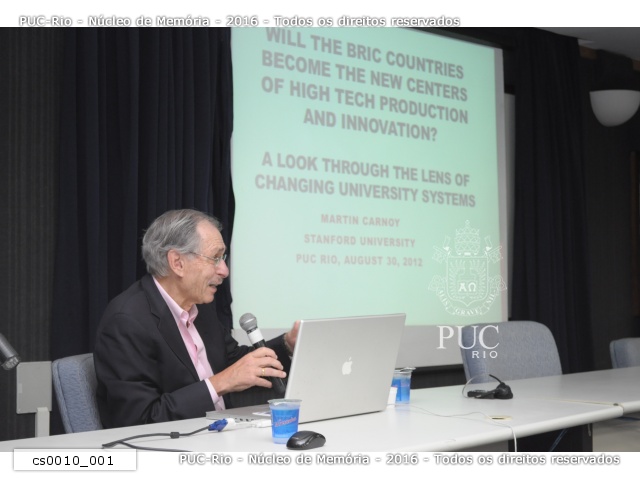 Apresentação da palestra Will the BRIC countries become the new centers of high tech production and innovation? - a look through the lens of changing university systems.
