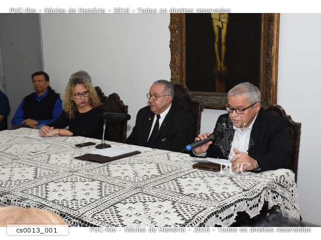 Da esq. para dir.: Prof. Luiz Scavarda, Prof. Marta Regina, Reitor Prof. Pe. Josafá S.J. e o prof. Paulo Esteves.