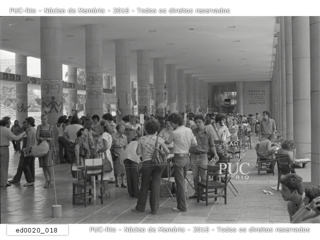 Alunos ocupam os pilotis em dia de eleição para o DCE da PUC-Rio.