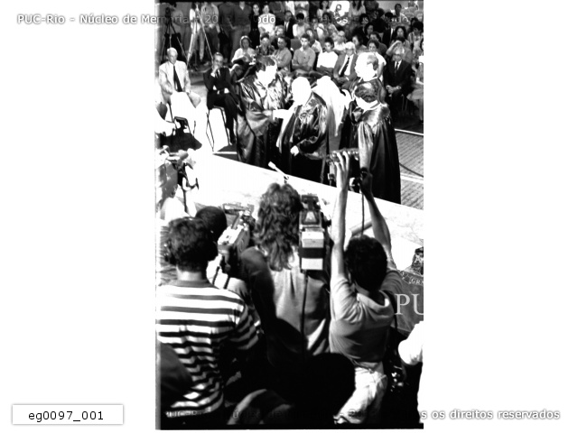 Cerimônia nas comemorações dos 50 anos da PUC-Rio na qual foi concedido o título de Doutor Honoris Causa a Sobral Pinto.