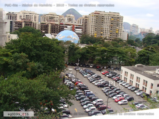 eg0099_015 | 3/7/2009 | Vista de uma das janelas do Departamento de História, em direção ao estacionamento e ao Planetário da Gávea. |