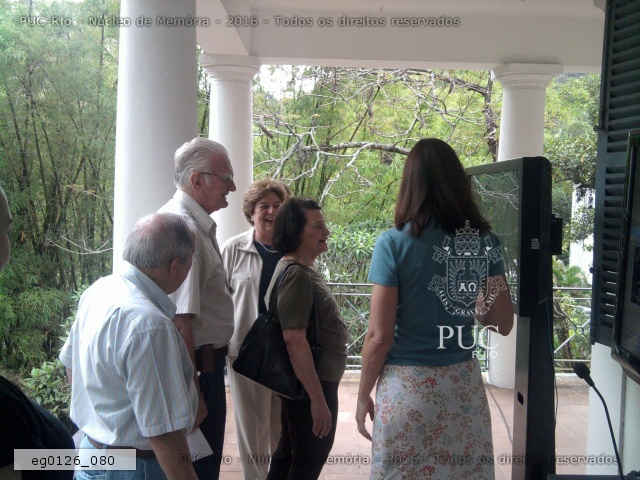 Da esq. para dir.: prof. José Carmelo Braz de Carvalho (EDU), prof. Osmar Fávero (EDU), ao fundo a profa. Margarida de Souza Neves (HIS), profa. Maria de Lourdes Albuquerque Fávero (UFRJ) e Silvia Ilg Byington (Núcleo de Memória)