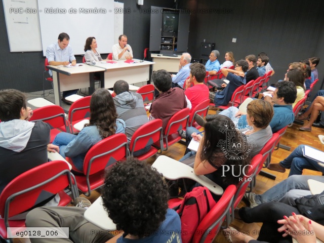 Ma mesa da esq. para dir.: prof. Julio Lubianco (Chefe de reportagem do site CBN e prof. do curso de Jornalismo da PUC-Rio), Mariza Tavares (Diretora nacional de jornalismo da Rádio CBN) e Álvaro Oliveira Filho (Gerente nacional de esportes e jornalismo da CBN)