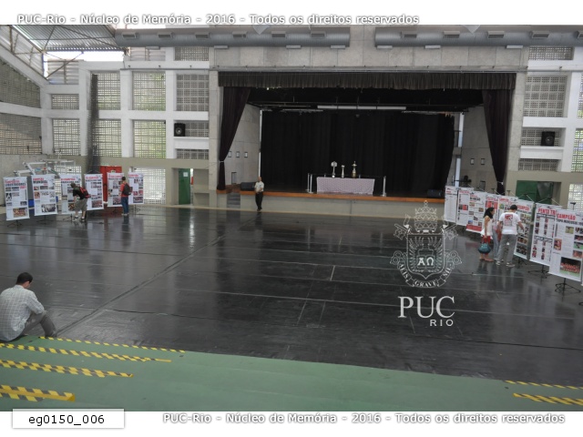 Exposição sobre a história do time do Flamengo no ginásio da PUC-Rio.