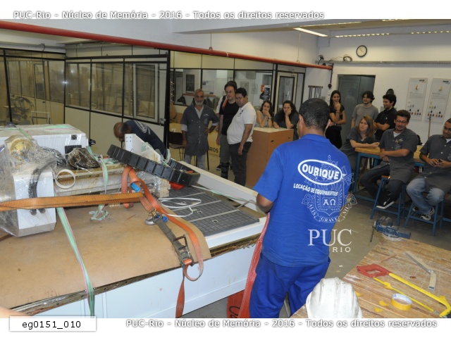 Funcionários e alunos observam a entrega dos novos equipamentos.