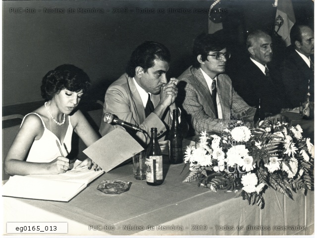 eg0165_013 | 12/1974 | Mesa com autoridades, professores participantes e organizadores da cerimônia de formatura dos cursos de engenharia do CTC. |
