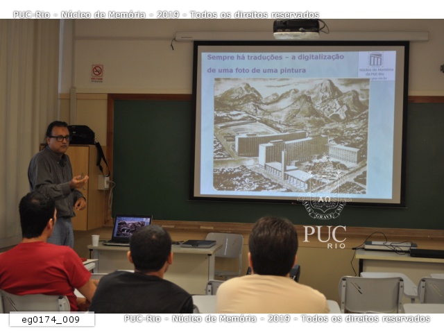 O pesquisador Clóvis Gorgônio na oficina do Núcleo de Memória da PUC-Rio.