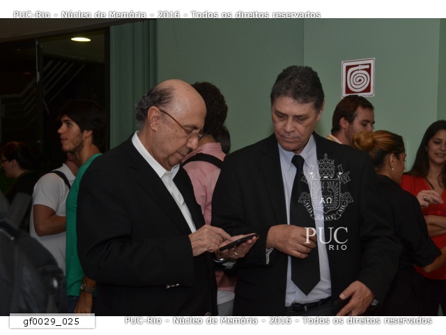 Henrique Meirelles ao lado do prof. Tácio Mauro na confraternização.