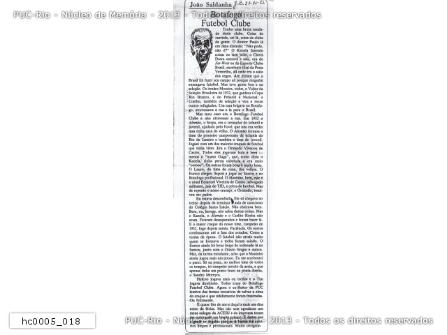 Crônica de João Saldanha no Jornal do Brasil sobre o Botaofogo Futebol Clube, onde cita o pe. Ormindo Sodré Viveiros de Castro, S.J. que, segundo o autor, era o melhor jogador do time.