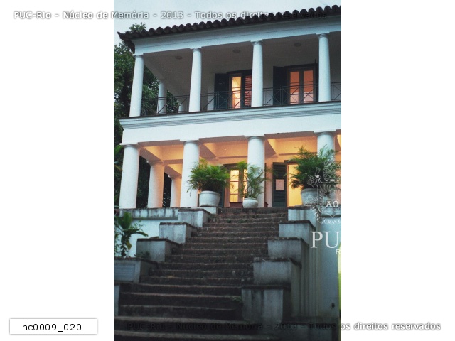 Solar Grandjean de Montigny ao final da tarde com as luzes acesas.