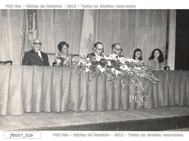 Mesa com autoridades em evento não identificado (talvez formatura).
