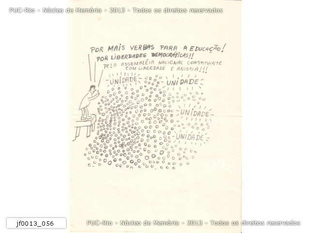 Publicação da chapa Unidade. Desenho representando um candidato da Unidade fazendo um discurso.