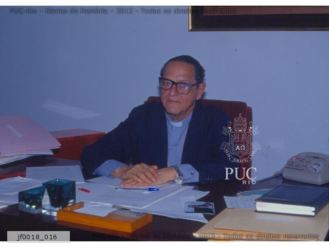 Reitor Pe. Laércio S.J. em sua mesa de trabalho.