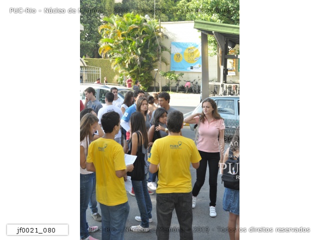 Visitantes no evento PUC por Um Dia na entrada da Avenida Leonel Franca, em frente ao bicicletário.