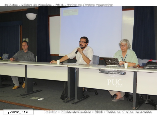 Da esq. para dir.: 1° Álvaro Henrique de Souza Ferreira (GEO), 2° prof. Claudio Rezende Ribeiro (UFRJ), 3° Sônia Rabello (vereadora).