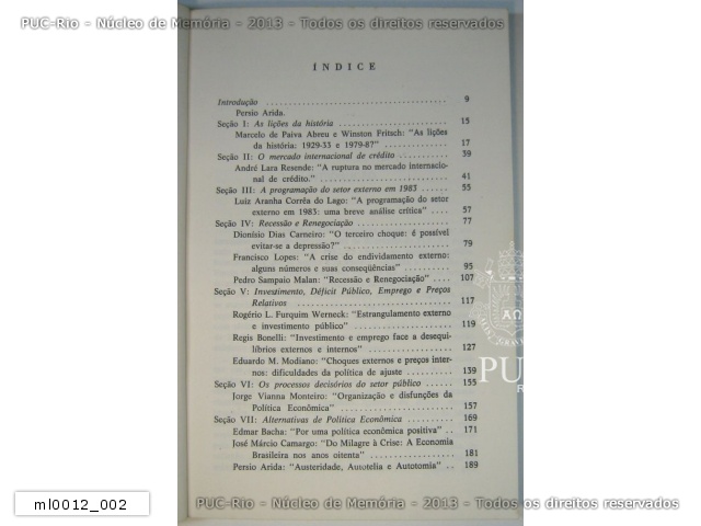 Livro: Dívida Externa, Recessão e Ajuste Estrutural - índice