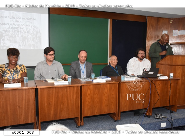 Da esq. para dir.: profa. Valéria Pereira Bastos (SER), prof. Francisco de Guimaraens (JUR, DCCS), pe. André Luís de Araújo (Vice-Reitor), prof. Augusto Sampaio (Augusto Luiz Duarte Lopes Sampaio) (COM, Vice-Reitor para Assuntos Comunitários), Bernardo Mercante Marques, n.i.