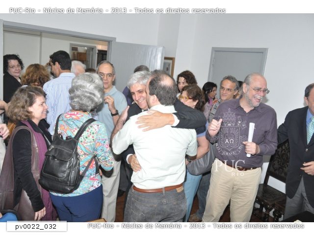 Professores e funcionários da PUC-Rio cumprimentam o Professor Alfredo Jefferson na cerimônia de posse da Professora Daniela Vargas no cargo da coordenação central de graduação, que até então ele ocupava.