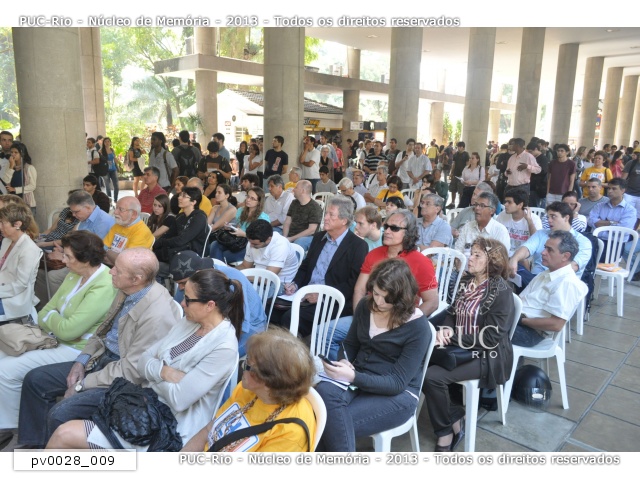 O público de dentro e de fora da comunidade da PUC-Rio assiste ao debate sobre o projeto de construção da linha 4 do metrô.
