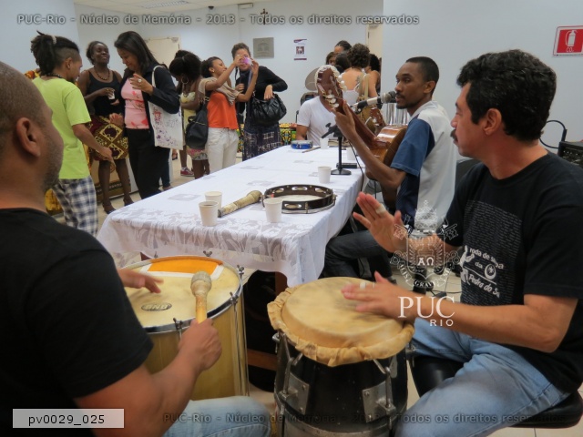 Coquetel e apresentação musical do grupo Roda de Samba da Pedra do Sal no encerramento do 'Seminário de Reflexão e Memória da Cultura Afrobrasileira', realizado em novembro de 2011 na PUC-Rio.