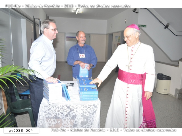 O Núncio Apostólico no Brasil, Dom Lorenzo Baldisseri, observa os seus livros na mesa na entrada da Reitoria.