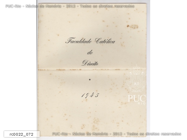 Direitos de uso, reprodução e manuseio reservados. Núcleo de Memória da PUC-Rio.