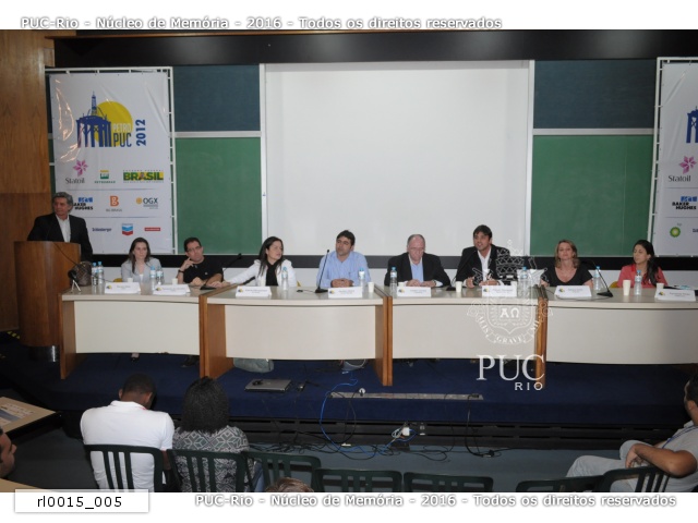 Da esq. para dir.: n.i., n.i., n.i., Karina Albuquerque (GB Brasil), Zenóbio Matos (Schlumberger), Lairton Correa (Petrobras), Renato Niemeyer (Baker Hughes), Adriana Gama (Chevron), n.i.