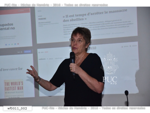 A professora e pesquisadora Rejan Guedes Bruni, do Departamento de Biologia, na palestra Ser biólogo num planeta em crise: desafios e potência para o evento do PUC por um dia 2019.1.
