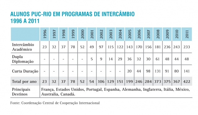 Alunos da PUC-Rio em programas de intercâmbio - série histórica