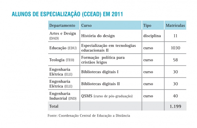 Alunos da Coordenação Central de Extensão (CCE) por curso - série histórica
