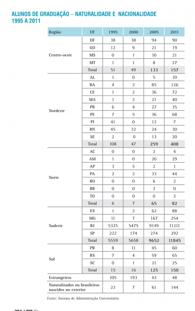 Alunos de Graduação naturais de outros estados da federação e estrangeiros