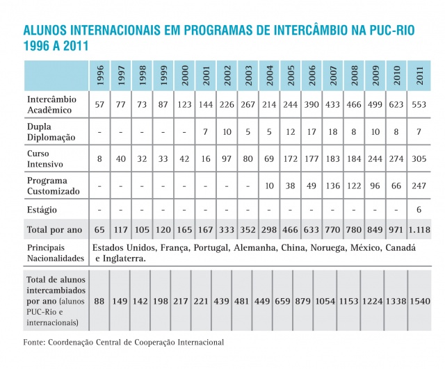 Alunos internacionais em programas de intercâmbio na PUC-Rio - série histórica