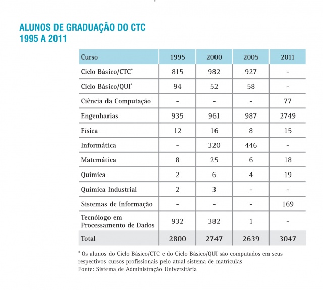 Alunos de Graduação do CTC - série histórica